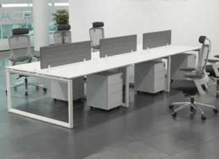 Escritorios operativos, puestos de trabajo, Workstation con una linea elegante de formas rectas, apropiadas para dar una imagen de elegancia y modernidad.