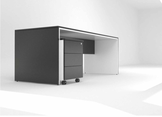 Cajoneras fabricadas en tablero melaminico de 18mm canteados en PVC con sistema de cierre integrado y cajones interiores provistos de guías metálicas con rodamiento de rodillo.