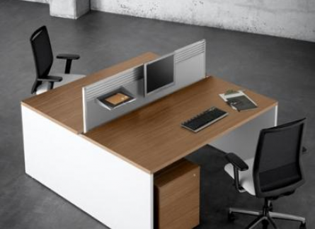 Escritorios, puestos de trabajo, Workstation con una linea elegante de formas rectas, apropiadas para dar una imagen de elegancia y modernidad.