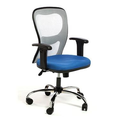 Respaldo tapizado en tela de red color gris perla, negro, azul, naranja, rojo y visón.