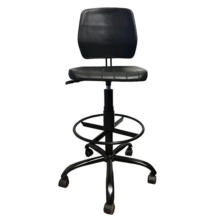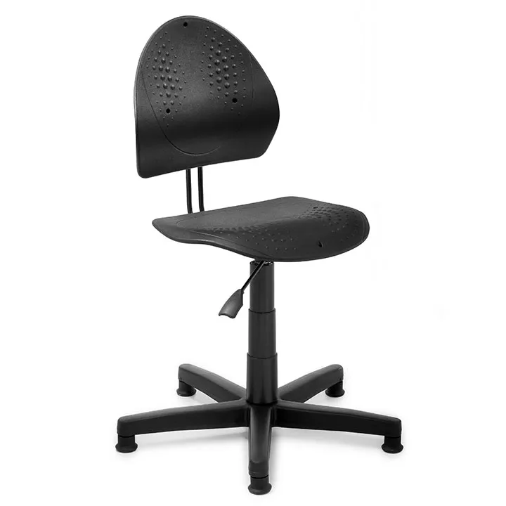 Asiento y respaldo inyectados en poliuretano con piel integrada, con estructura metálica interna. Unión por contacto permanente, el cual permite regulación de altura y reclinación determinada. Alta resiliencia y resistencia al desgarro.